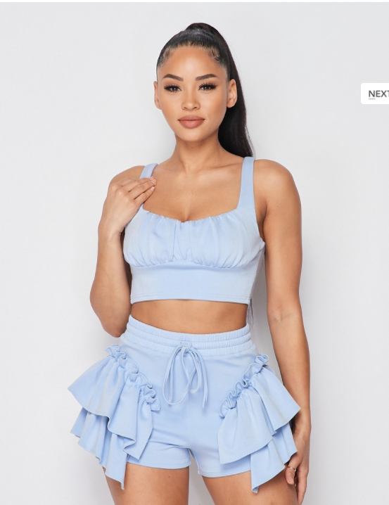 This set is giving all the frills this summer season. Smooth fabric and good stretch.